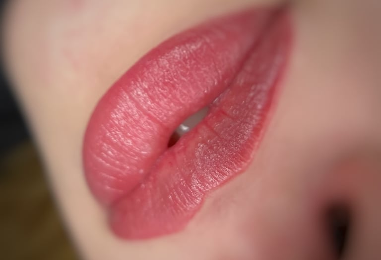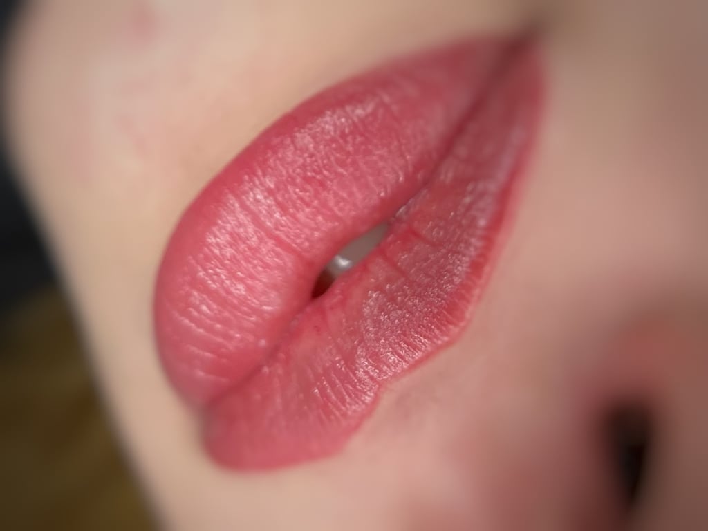 Švelnus ir ryškus lūpų atspalvis, kuris išlieka visą dieną. Lūpų kontūro paryškinimas ir lūpų formos užpildymas akvarelės, ombre technikomis.